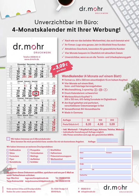 4-Monats­kalender mit Deinem Logo