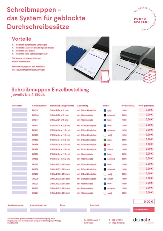 Schreibmappen- Bestellung