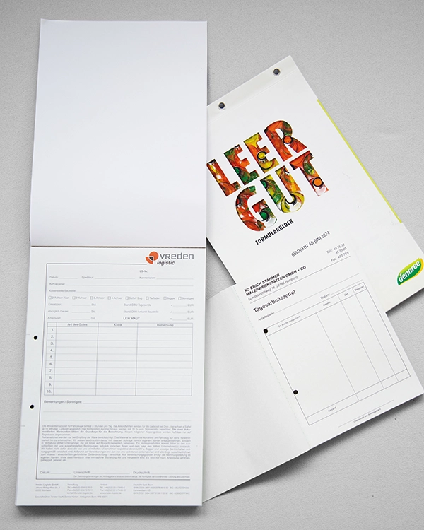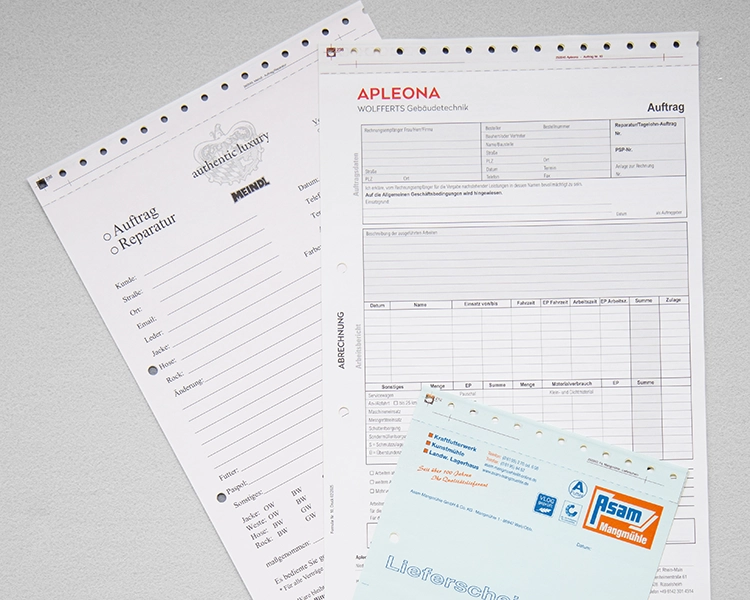 Ideal für alle, die unterwegs sind und den Überblick behalten wollen: Geblockte Sätze bestehen aus einem Oberblatt und mehreren selbstdurchschreibenden Kopien – geleimt, geöst, geheftet – immer fest zusammengehalten. Ob im Außendienst, auf der Baustelle oder am Empfang.