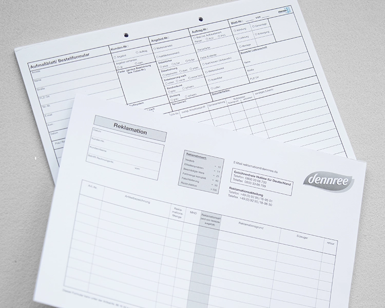 - Auf Wunsch mit Lochung, Nummerierung oder Perforation